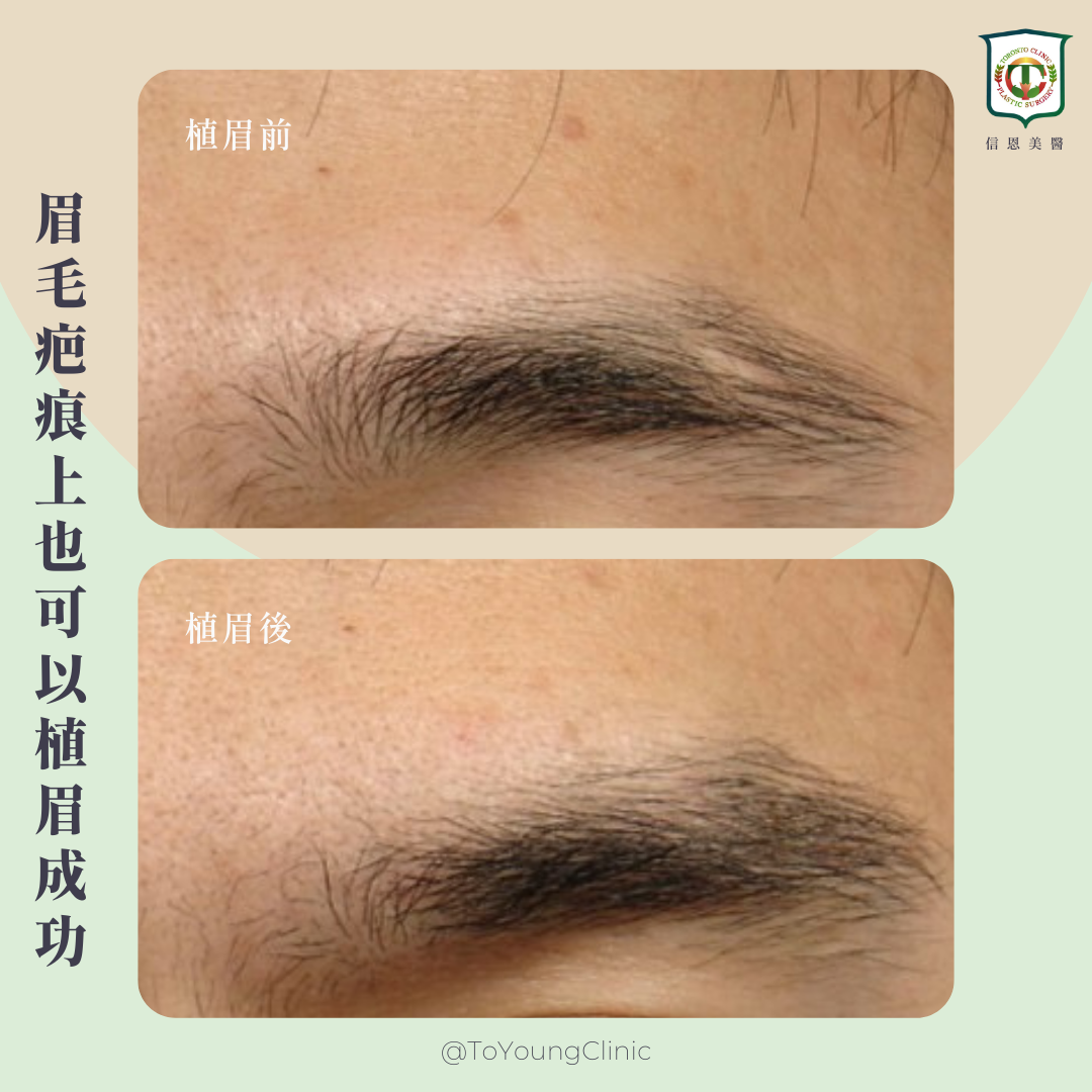 我們鼓勵他:「運勢靠自己,但若真的很在意斷眉狀況,即使是疤痕部位也能成功植眉!」