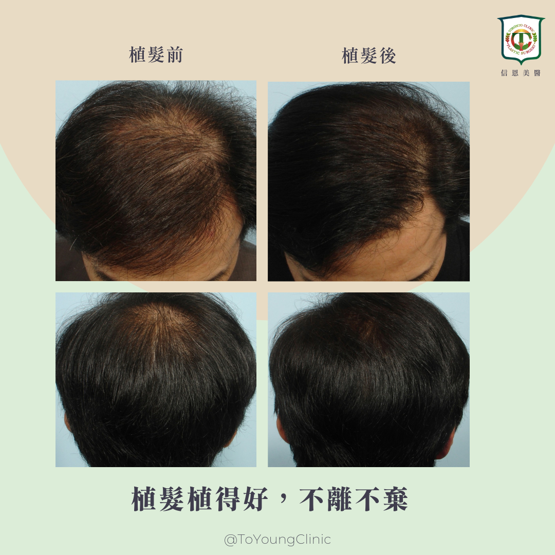 - 這次術後還是要繼續使用抗禿髮藥物,否則頭頂及旋渦處未植髮的外圍區域毛髮還是會繼續掉!將來可能需要再植髮!