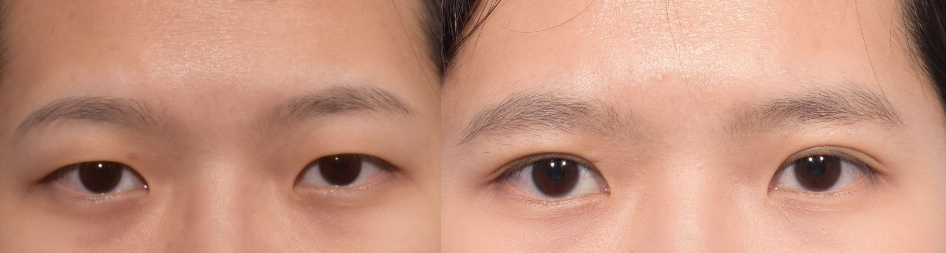 (下圖) 單眼皮女孩接受縫雙眼皮手術,即使雙眼皮的幅寬不多,仍有很明顯加分效果。